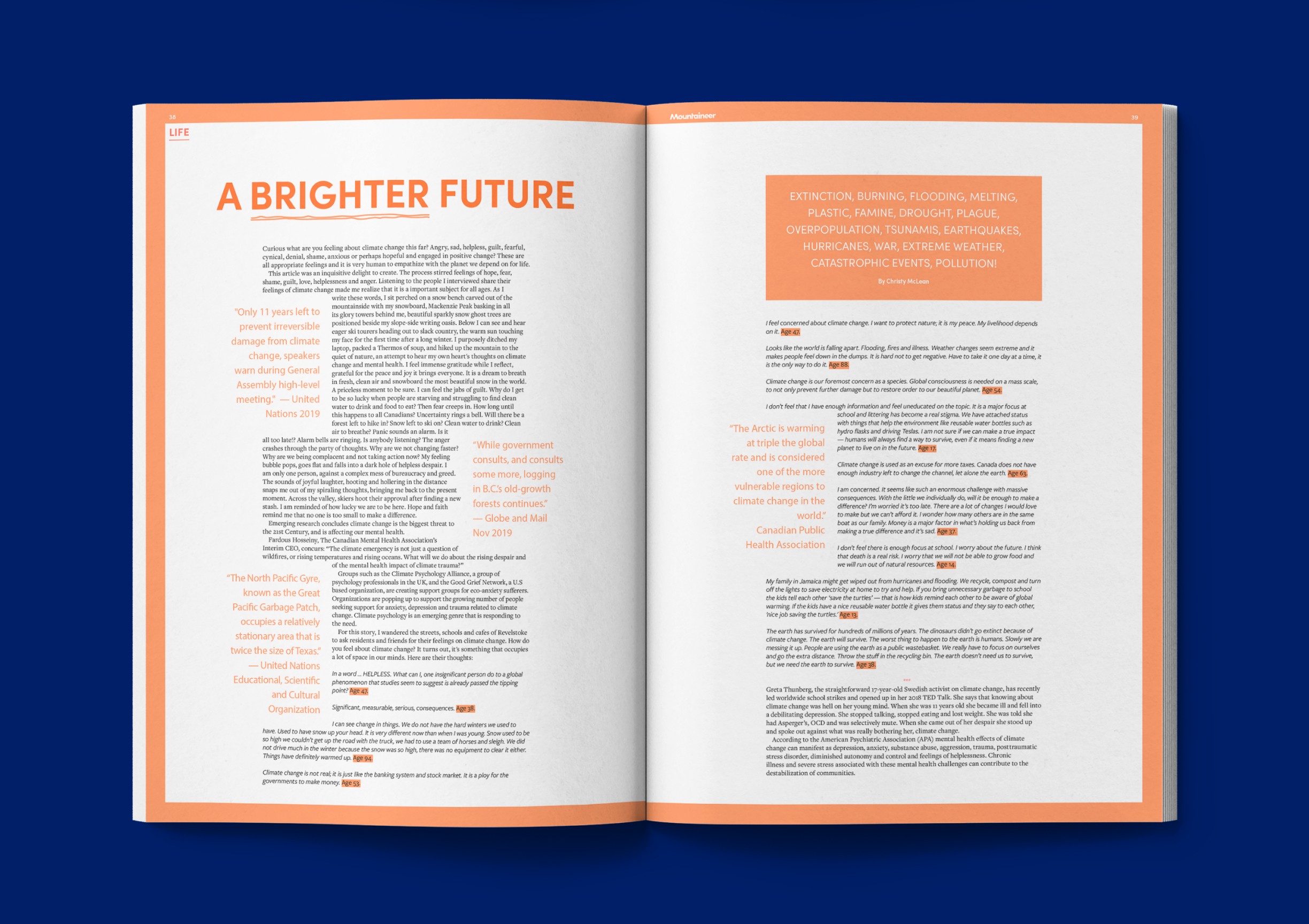 Editorial Design | 2019–2022 After creating the visual identity for Revelstoke Mountaineer Magazine, I reimagined its editorial design to serve the vibrant community of Revelstoke. From master pages to multiple issues over three years, the redesign focused on making content clear, accessible, and engaging—despite the challenges of a local magazine’s budget.